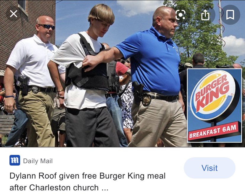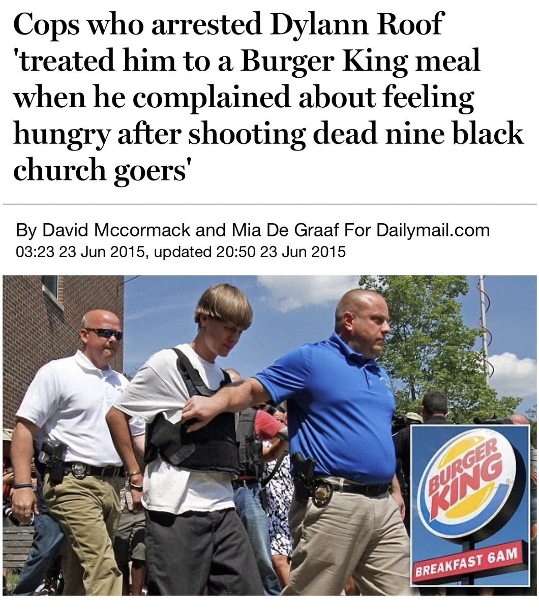 Hthe Aint On Twitter Why Is It That Privelleged Dylann Roof Is Treated To A Burger King After Shooting 9 Black People In A Church But George Floyd S Murderer Is Only Getting Charged